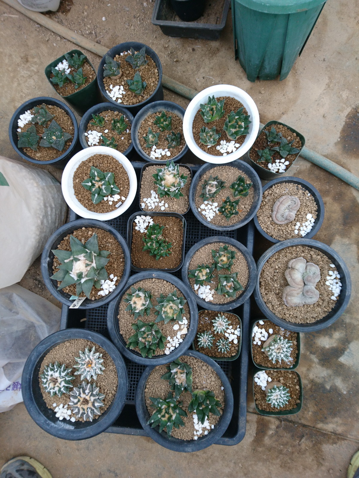 今日の植え替えは竜角牡丹と黒牡丹 今日のお話 X Facebook LINE コピー 2020.02.18 植え替えると増えるんだよね鉢数が・・・ 今日の植え替え予定達 今日の植え替え予定の苗たちです黒牡丹の4本植えだったヤツ1本死んだので3本植えに変更ギッシリ入って植え替えないとダメな竜角君達石橋さんちからやって来たゴジラ君達今日は君らみーんな植え替えだぁ~♪赤花三角さんや亀甲君達もいるけど、ある程度の大きさのは単鉢へ移行だなぁそうして、鉢は増えてドナドナされていってしまうのだぁ (^_-)-☆ 植替え済んだ皆さん 植替え済みの竜角君 植替え済みのゴジラ君 将来が楽しみな群生竜角君 mizuchan このページの書き手 サボテンの趣味会、日本サボテン狂人会、埼玉サボテンクラブ等に出没するサボタニ大好きオジサン mizuchanをフォローする