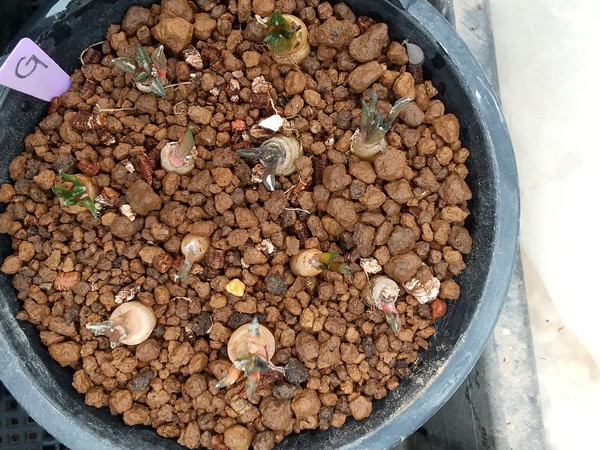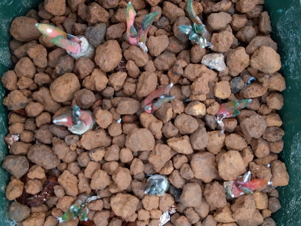 黒牡丹錦の子供達 今日のお話 X Facebook LINE コピー 2020.04.28 黒牡丹錦の子供達 今日は昨日抜いておいた黒牡丹錦を植え替えた蒔きっぱなしで多少痛んでいたけど元気になるだろうかなぁ??今のところ半数以上7割未満の錦率というところ錦同士で掛ければいいのに欲張って象足を掛けたので発生率が多少低いけどどうせ蒔くなら大形の錦を創りたいよね仲間外れは、昨日植え残った象足?黒牡丹くん にほんブログ村 良かったら、帰りに隣(上)のバナーをクリックしてブログ村を覗いてみてねブログ村のポイントが上がりこのHP経由でサボテン会の仲間が増えるよ mizuchan このページの書き手 サボテンの趣味会、日本サボテン狂人会、埼玉サボテンクラブ等に出没するサボタニ大好きオジサン mizuchanをフォローする